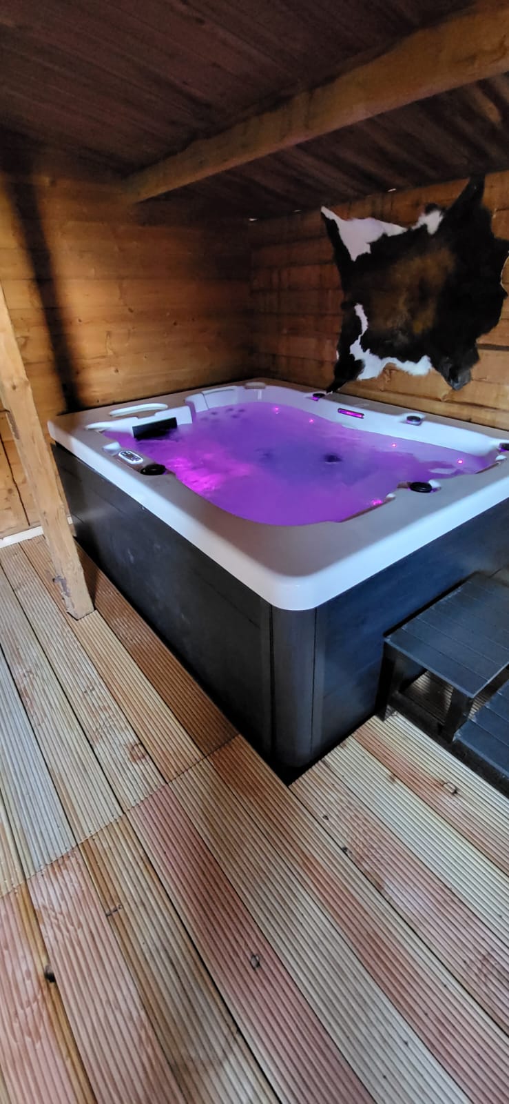 Simply jump into the outdoor hot tub in the rustic wooden hut in the resort's garden